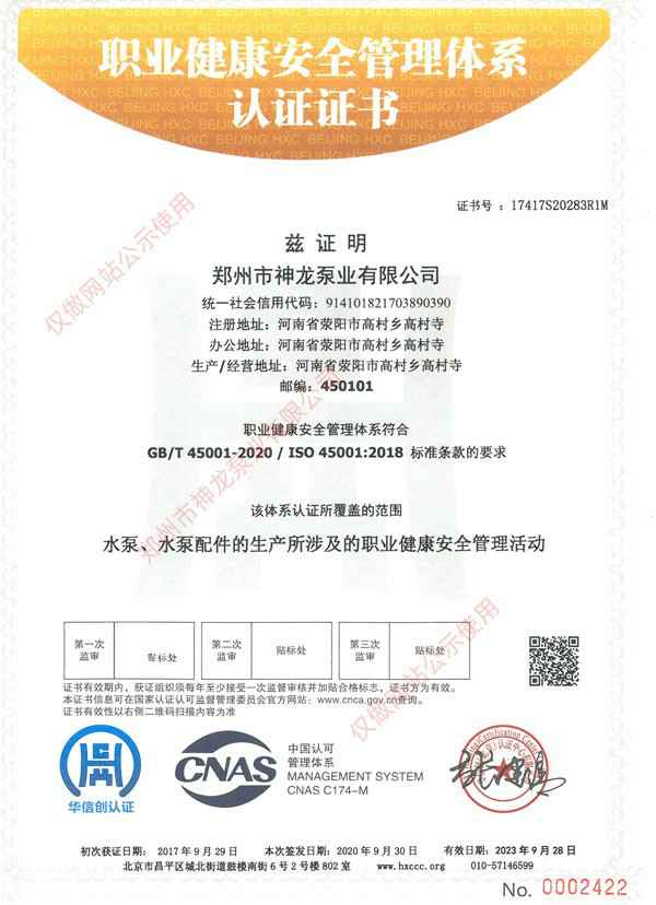 职业健康认证证书